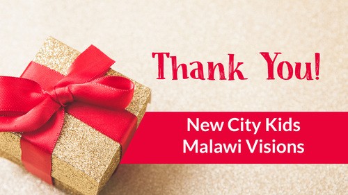 for your support for both New City Kids and Malawi Visions. You are changing lives through your generous support.